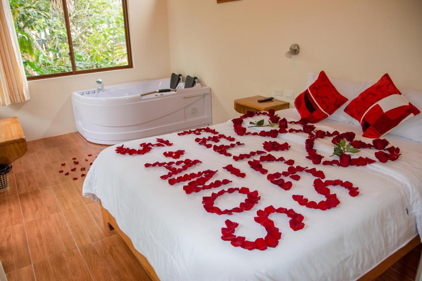 Deluxe Suite with Spa Bath. The hot tub is the standout feature of this suite. Boasting 1 bedroom, this suite has 1 bathroom with a bath, a seating area and terraceyou can relax. Featuring a balcony with garden views, this suite also features a dining area and a flat-screen TV. The unit offers 1 bed. ;
