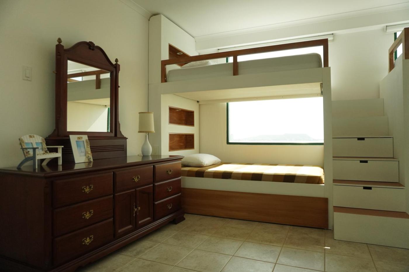 Two-Bedroom Apartment. This apartments standout feature is the pool with a view. This spacious apartment comprises 1 living room, 2 separate bedrooms and 3 bathrooms with a bath and a shower. Meals can be prepared in the well-fitted kitchen, which comes with a refrigerator, an oven and a microwave. The air-conditioned apartment provides a flat-screen TV, a washing machine, a seating area, a dining area as well as sea views. The unit offers 7 beds.